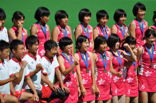 女子ホッケー U-16日本代表 青木彩乃さん (川西中学校3年:尾長島在住) U-18日本代表 小林はなさん (米沢商業高校3年:川西中卒)