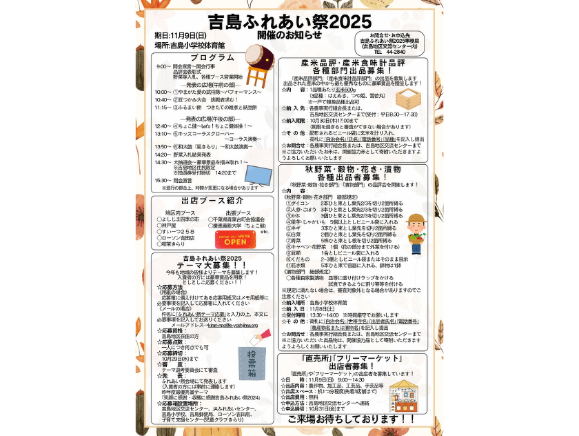 気になる方は画像を参照の上、吉島ふれあい祭2025実行委員会までお問い合わせください。